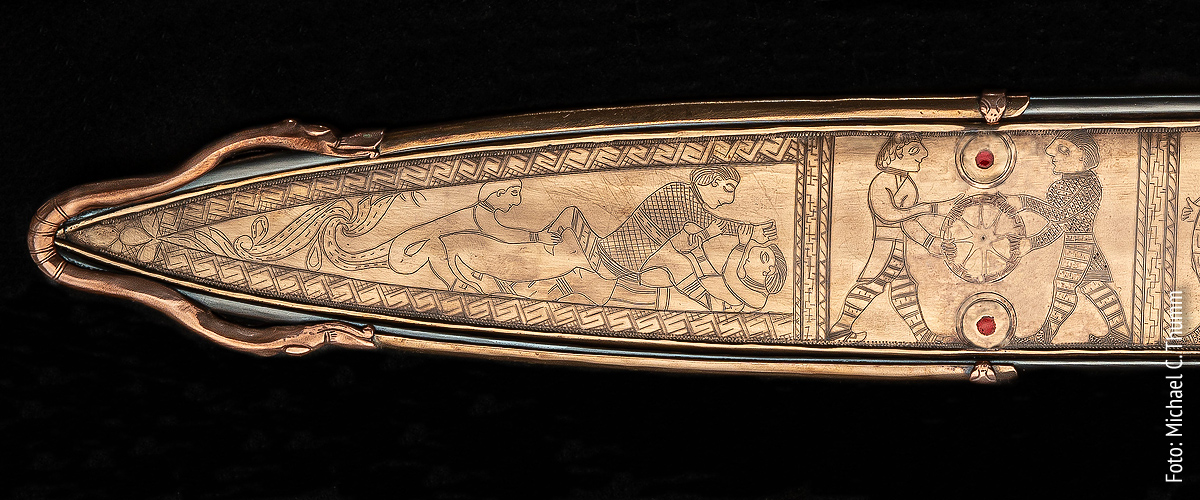 Latenezeitiches Schwert mit Scheide Blautopf Detail