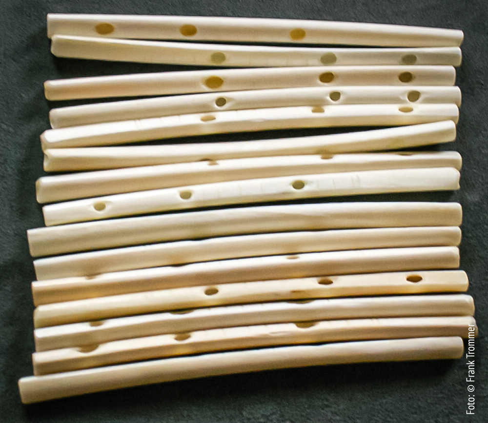 Steinzeitliche Flötenrepliken: Geierknochen, Elfenbein und Schwanenknochen